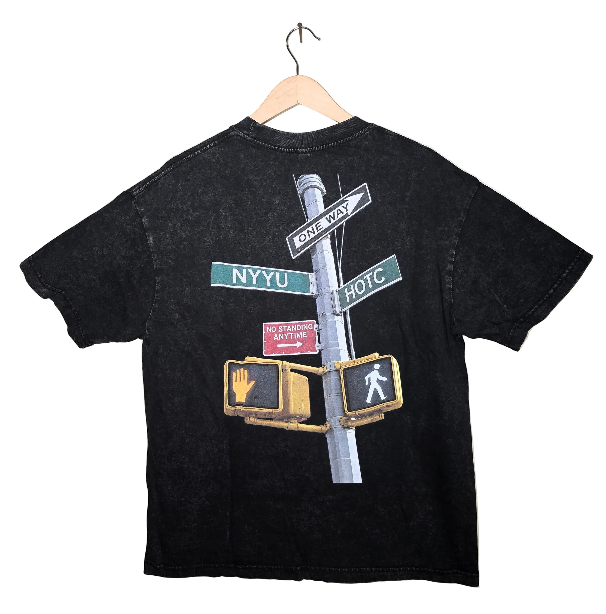 Elevate your streetwear game with this exclusive collaboration between NYY Underground and Heart of the City. This special edition t-shirt features a bold circular emblem on the front, blending iconic elements from both brands in a vintage-inspired design. The back showcases a creative graphic of a New York City street pole adorned with custom signs, traffic signals, and playful nods to urban life, capturing the essence of the collab. Crafted for comfort and style, it's perfect for fans and collectors alike.